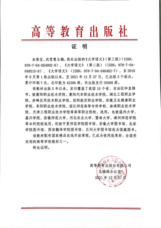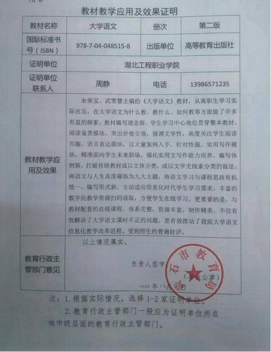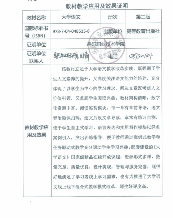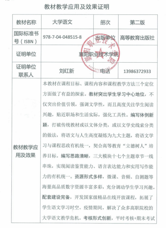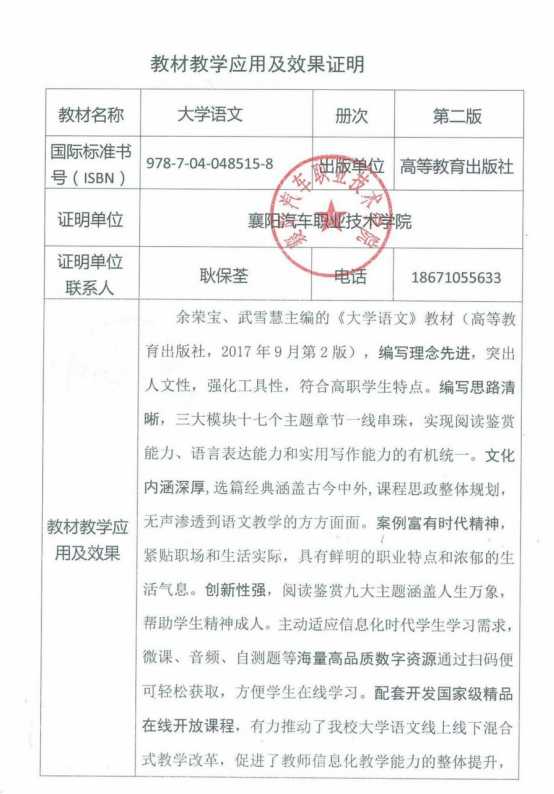 3.襄阳汽车职业技术学院教材教学效果及应用证明